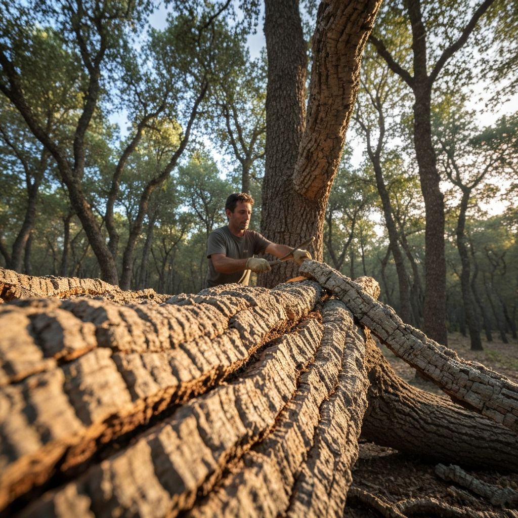 Cork bark is carefully hand-stripped from oak trees during summer months. This process doesn't harm the trees — in fact, it helps them live longer and absorb more CO2.